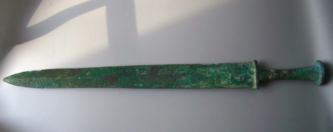 1)By this time, the form of bronze swords was mature. The earliest appearance of composite swords was seen – these weapons used high tin content bronze for the blade, and lower tin content bronze for the sword spine. This combination made the blade hard and the spine flexible, preventing it from breaking easily.