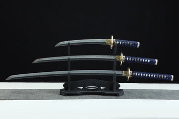 Shop a wide range of black and blue katanas at romanceofmen.com. The striking black and blue color combination is perfect for katanas, whether it’s a black blade with a blue saya or vice versa. Each katana is handmade, fully functional, and crafted to perfection.