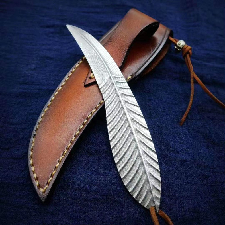 Description: The Feather is a strong and sharp Damascus steel fixed blade.Suitable for EDC, letter open and various uses