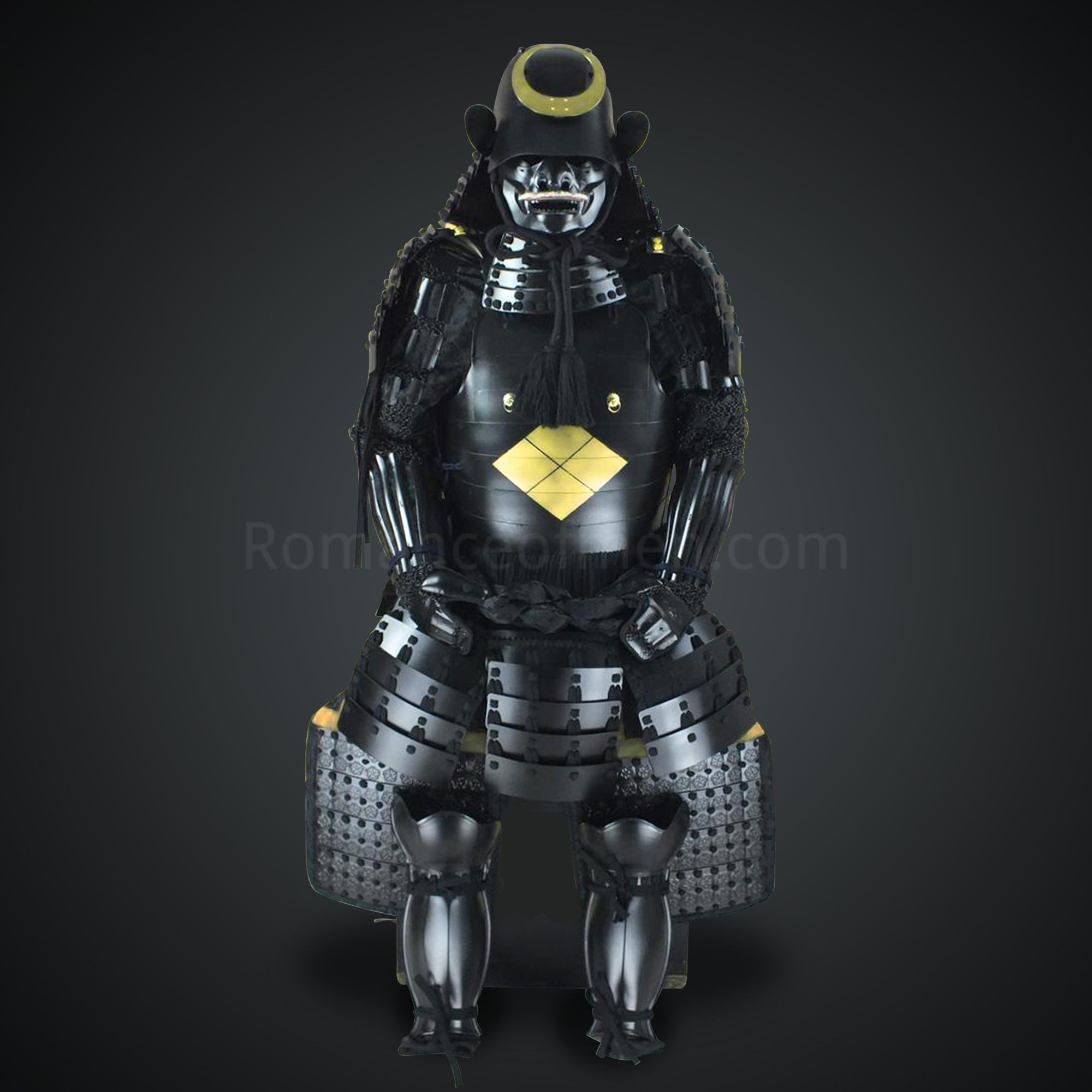Kuroda Yoshitaka All Black Samurai Armor Tosei Gusoku Style Circle Maedate Black scales with Black Cords