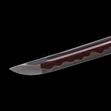 For the blade, we use a red colored pattern steel (AKA Damascus steel ) katana blade. The Red color is result of using high temperature to heat up the steel. It’s not paint, it looks more nature and eye catching. The pattern is from mixing different steels together, it’s not flame pattern but it looks unique and fascinating.
