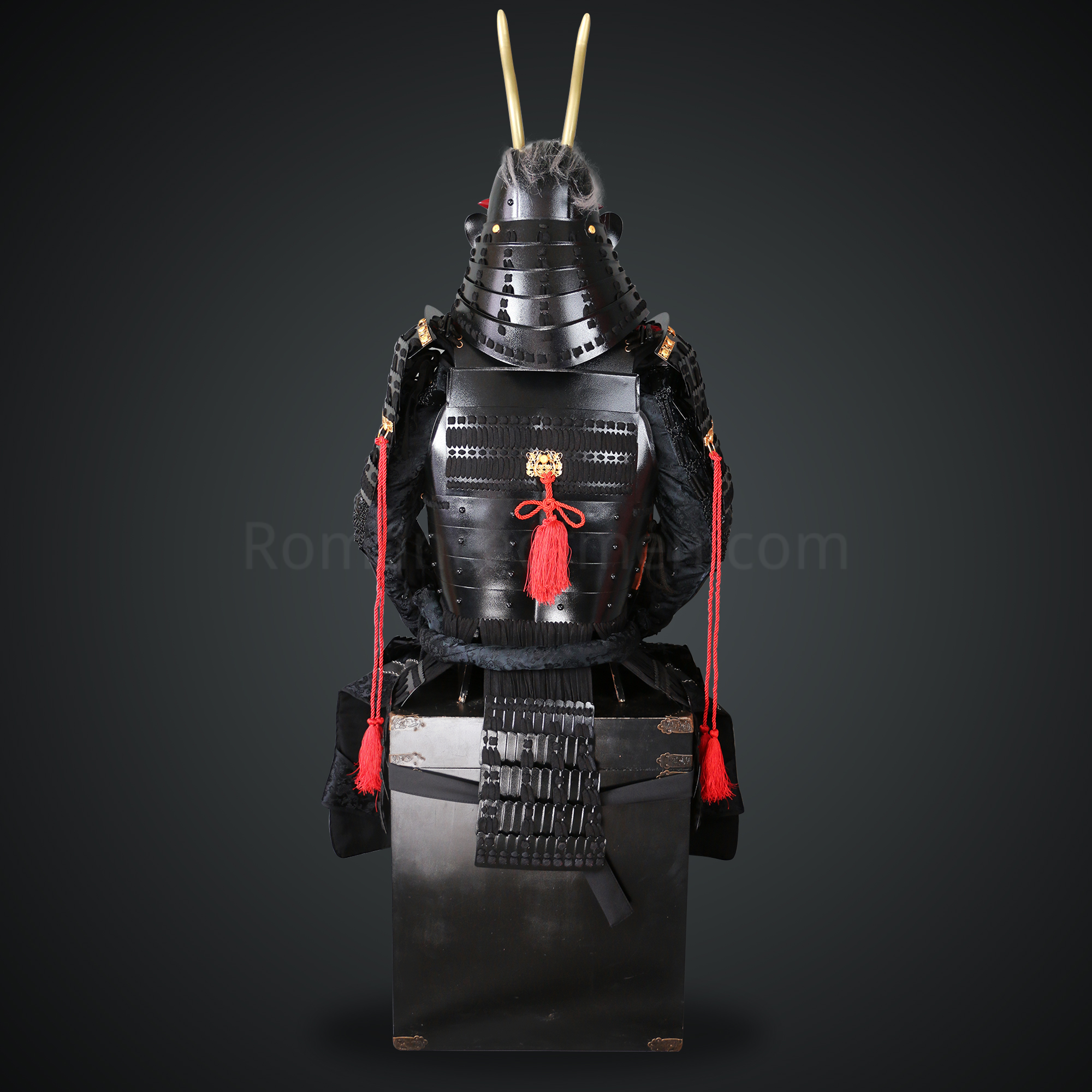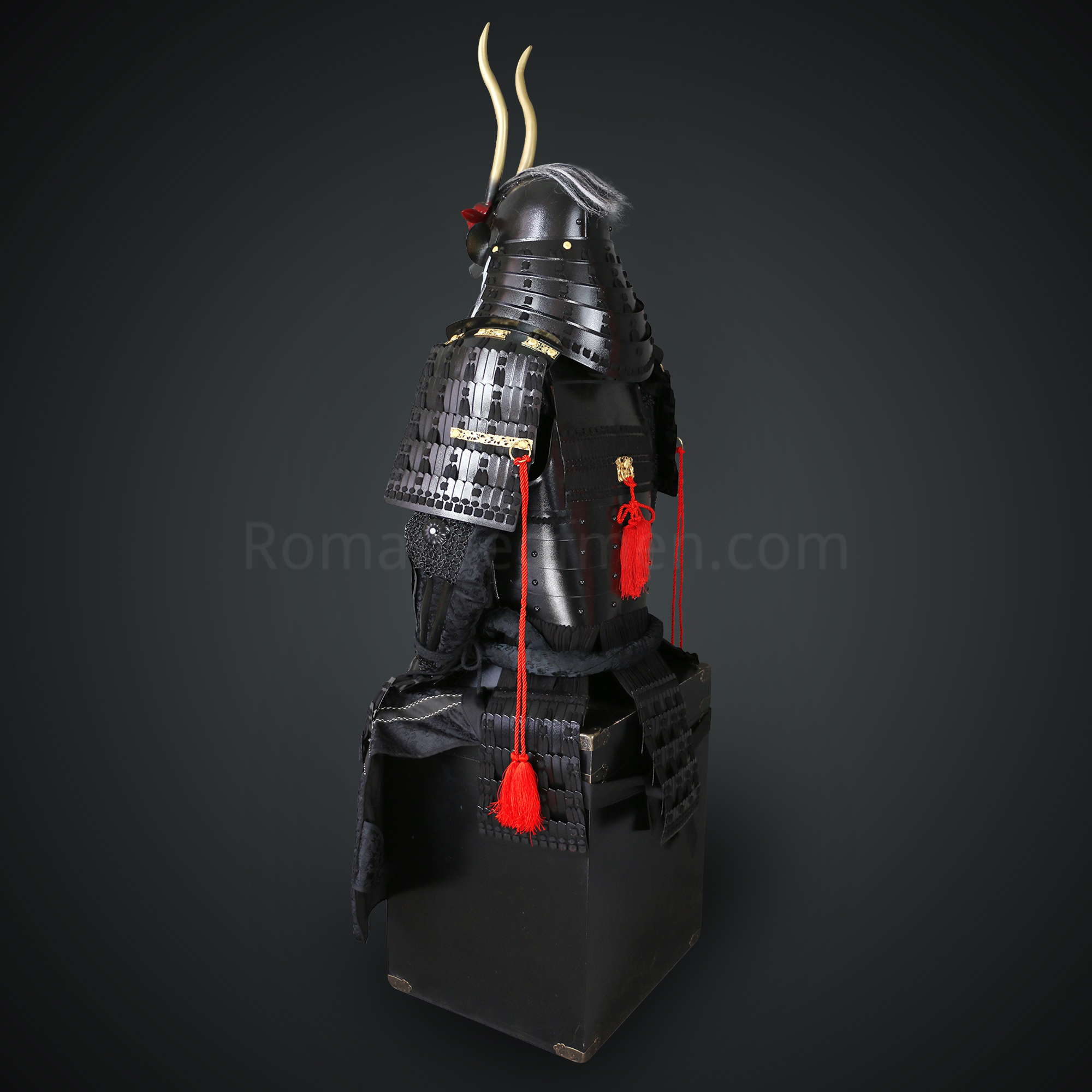 Helmet (Kabuto):This Kabuto features demon maedate (crest) with long horn, and a small Fukigaeshi that often features on Tosei gusoku.