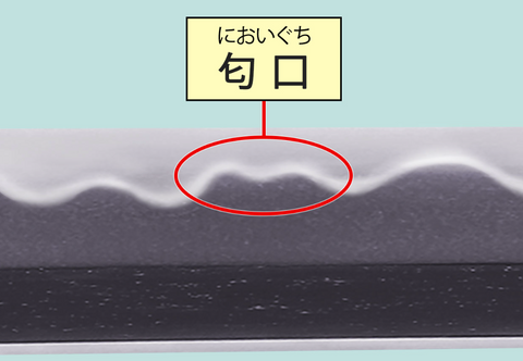 Nioiguchi refers to the boundary between the blade pattern (Hamon) (Hammon) and the ground iron (Jigane) in a Japanese sword. Depending on the condition of the Japanese sword, it can appear tightened, moistened, or disappear. It is said to be an important part that represents the quality of a Japanese sword.